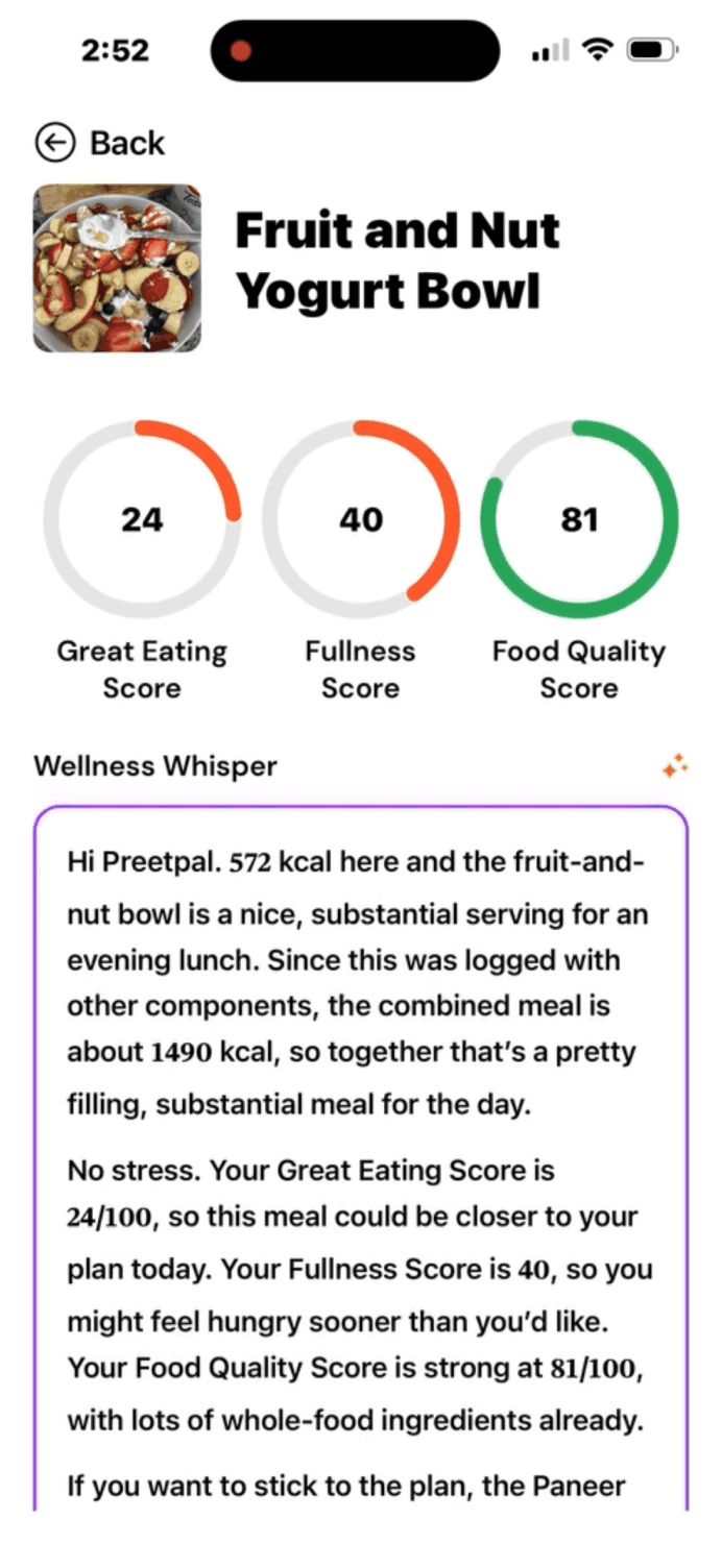 No manual tracking. No guessing. The wellness whisper gives you actionable insights keeping you right on track