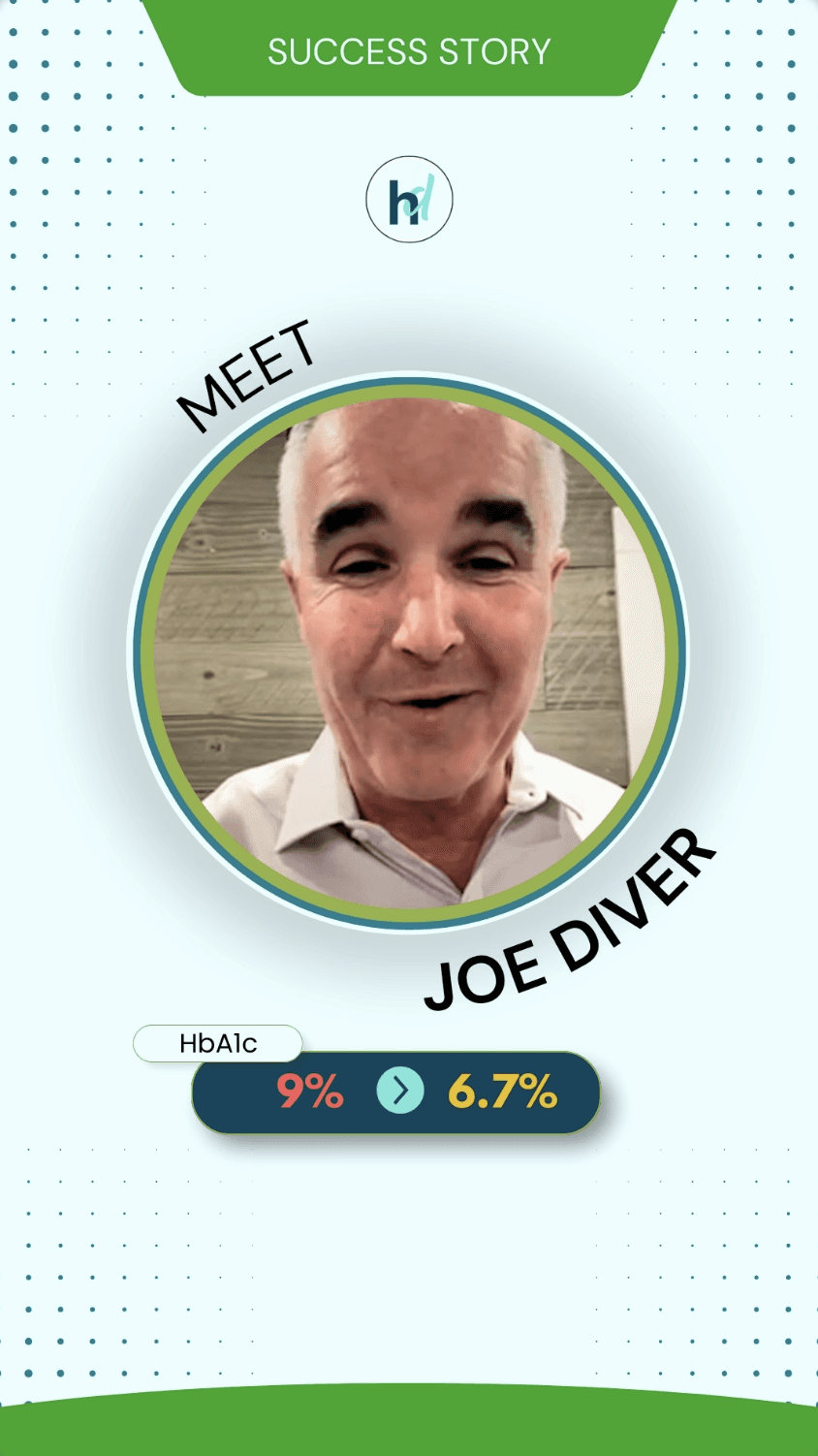 Joe used to skip meals and rely on willpower. Now meals are planned around real life—lunch stored at work, regular eating even on busy days, and habits anchored to routines. Glucose readings improved, and A1C dropped from 9.0% to 6.7%